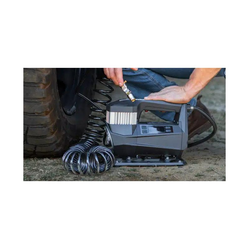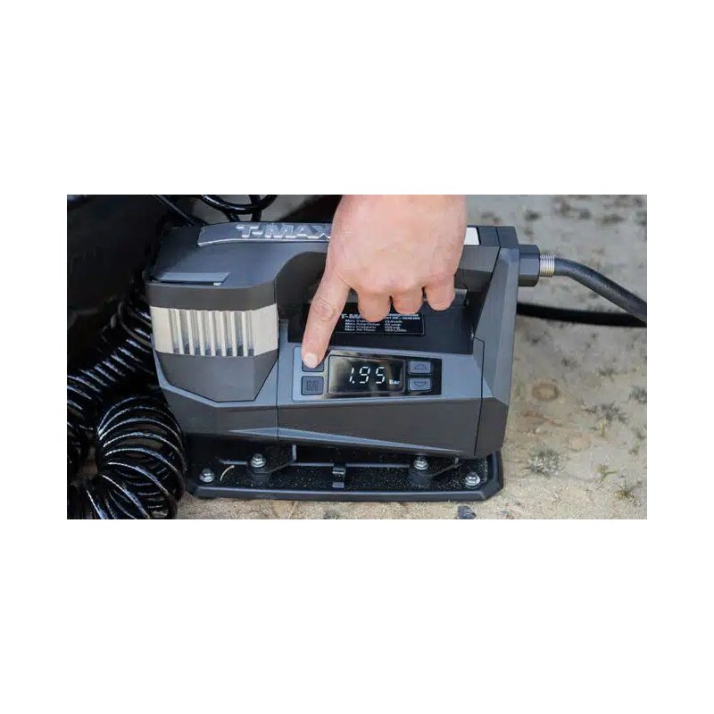 El T-MAX Storm Pump es el compresor de aire definitivo para todo amante del 4x4 que busque potencia, precisión y fiabilidad en cualquier terreno. Su motor de alto rendimiento permite inflar neumáticos de todoterreno, SUV, pickups y caravanas de forma rápida y segura, mientras que su carcasa metálica premium garantiza resistencia frente a condiciones extremas como barro, arena, nieve o superficies rocosas.