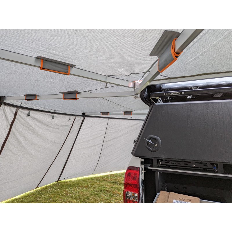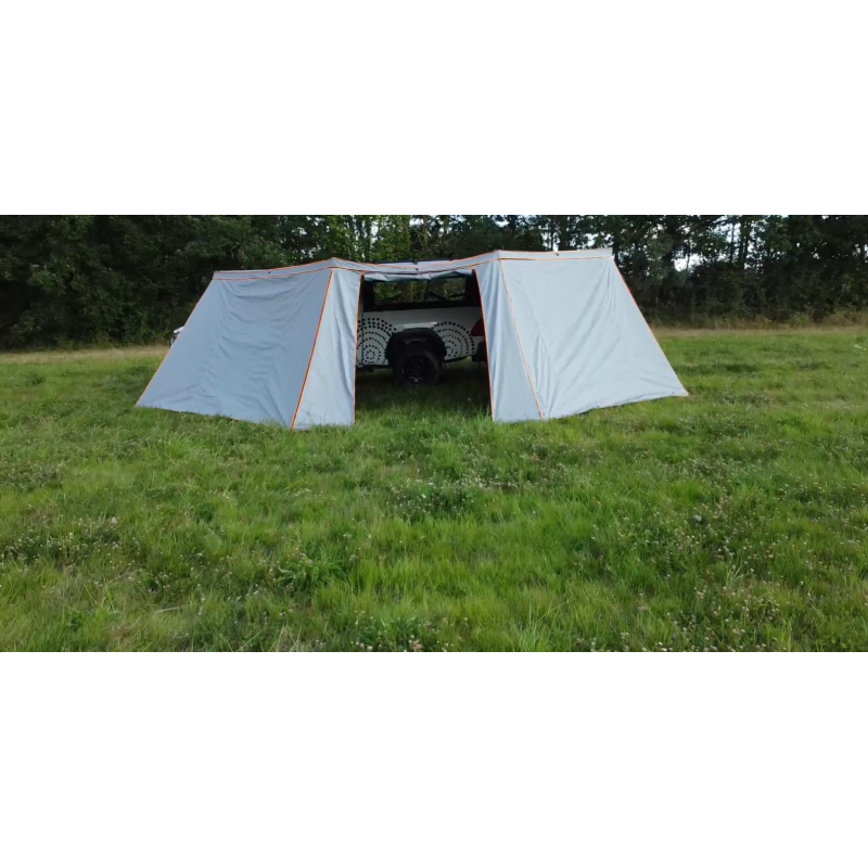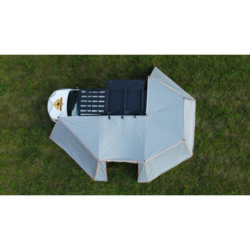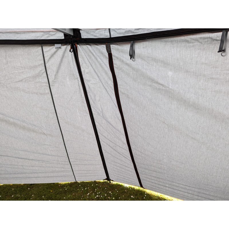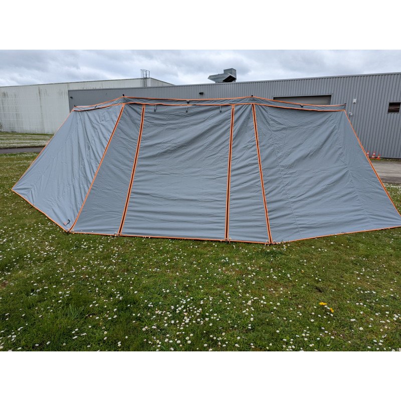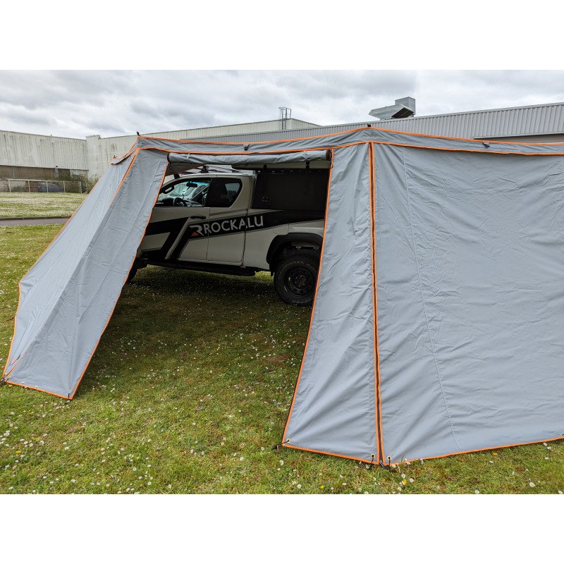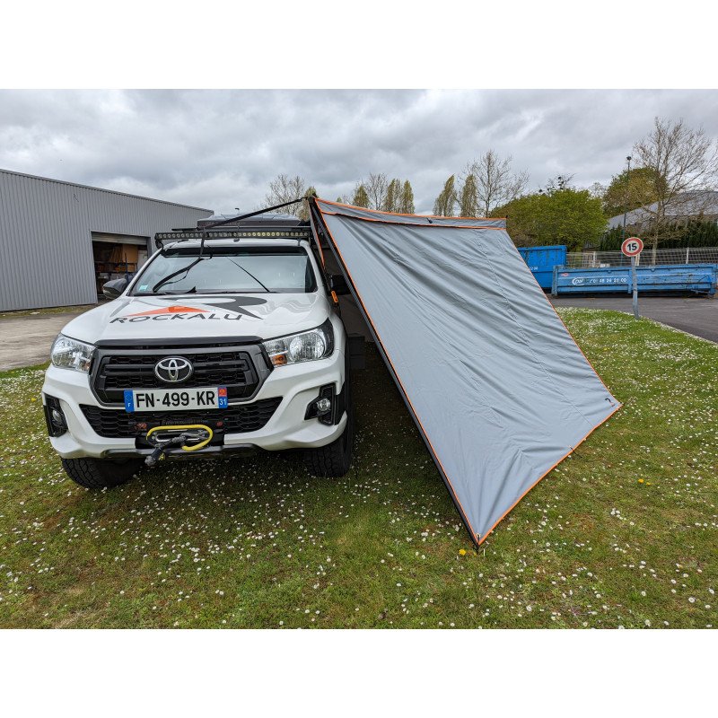 Las paredes del Rockalu 450° ofrecen la posibilidad de cerrar el toldo Rockalu para tener intimidad y protegerse de la intemperie. Todo ello para una superficie de 20,5 m². Amplíe su espacio vital y mejore su confort con el Rockalu 450° y su estructura totalmente ajustable.