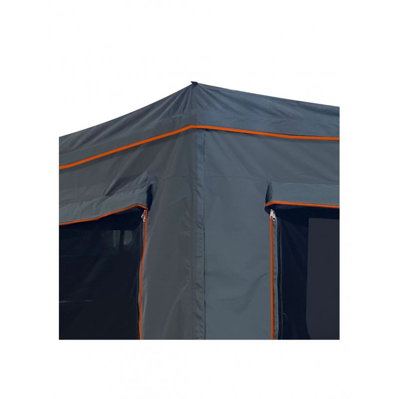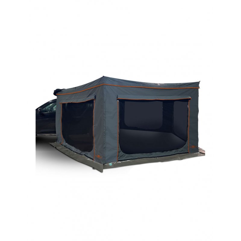 Los cerramientos Bullface para toldos 270 permiten ampliar nuestra zona habitable de camping, haciendo mucho más cómoda y confortable la vida al aire libre. El cerramiento tiene puertas con cremallera y mosquitera en todos los laterales y son específicos para cada toldo.