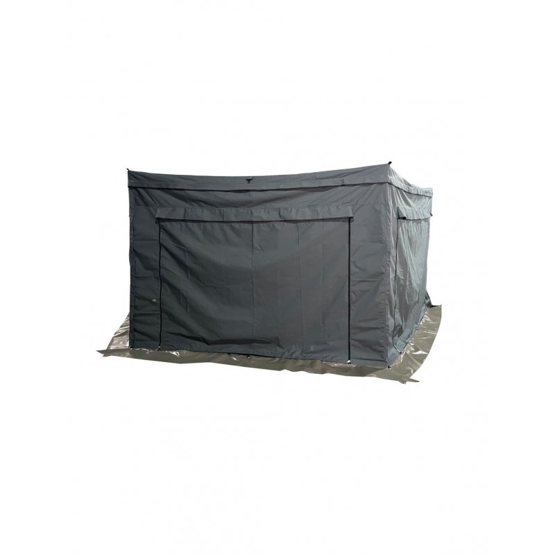 Los cerramientos Bullface para toldos 270 permiten ampliar nuestra zona habitable de camping, haciendo mucho más cómoda y confortable la vida al aire libre. El cerramiento tiene puertas con cremallera y mosquitera en todos los laterales y son específicos para cada toldo.